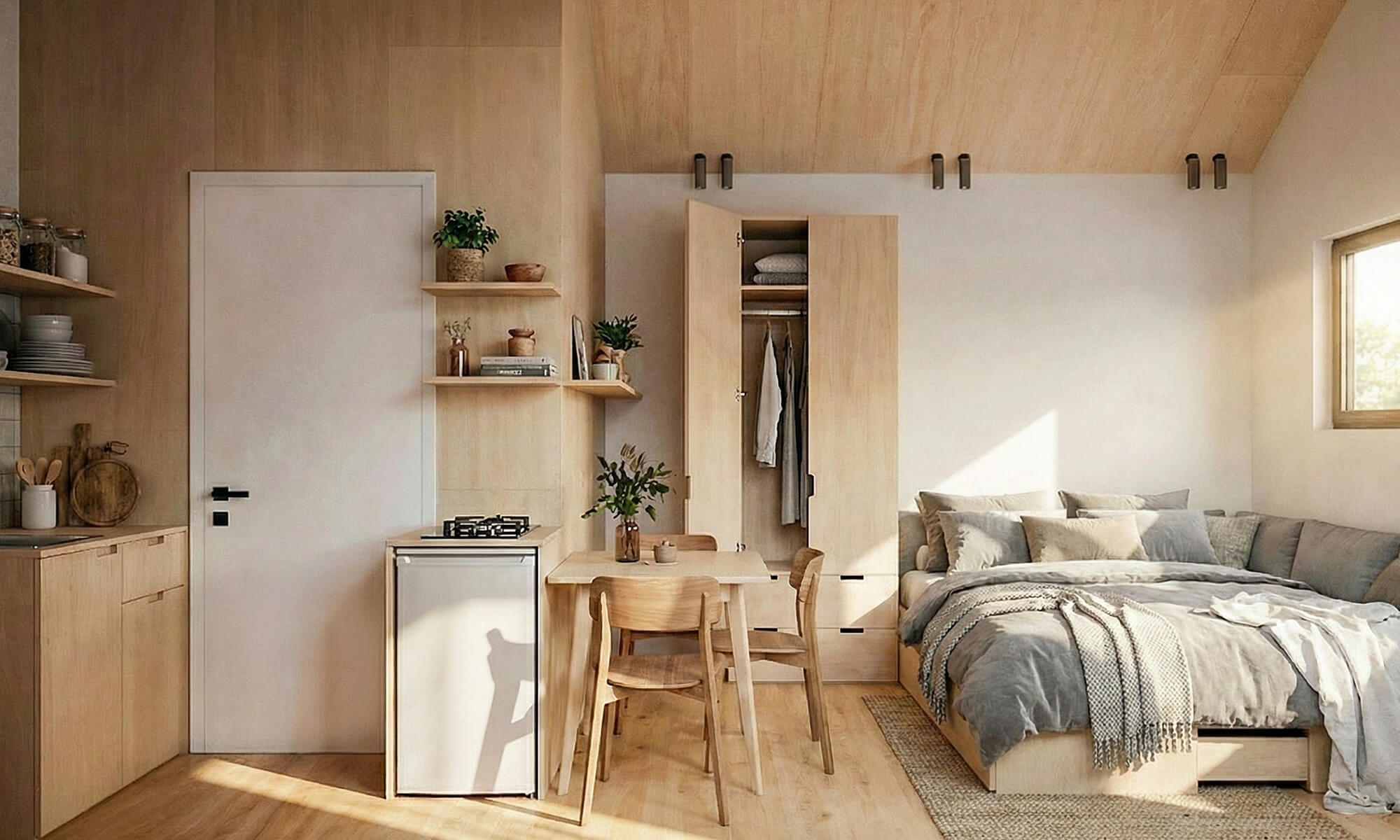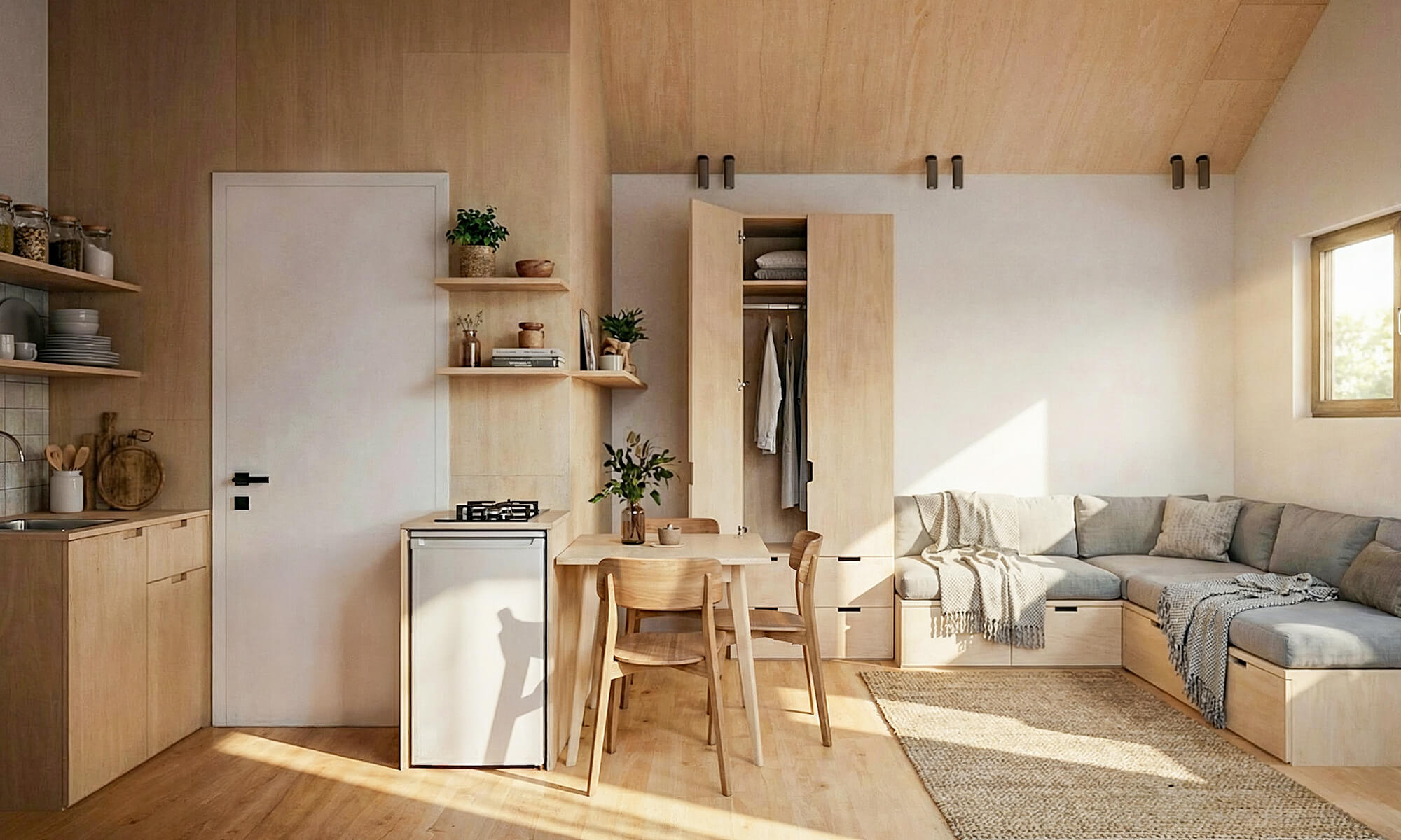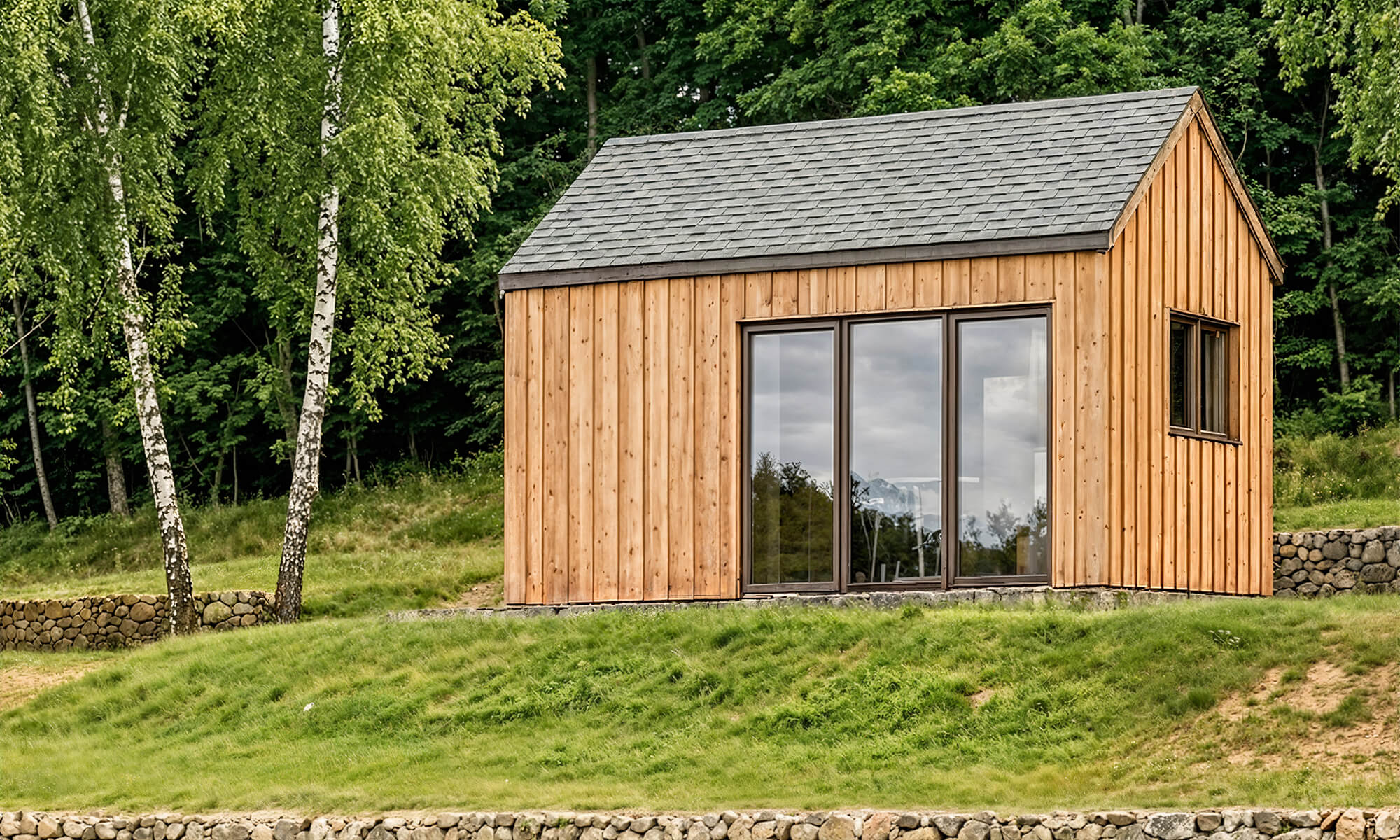 Un petit gabarit qui se loue très bien quand il est bien isolé et “propre” côté finitions : 16 m², 1 pièce, 1 WC, dimensions 5,8 × 3,4 m, toit à pignon 35°.