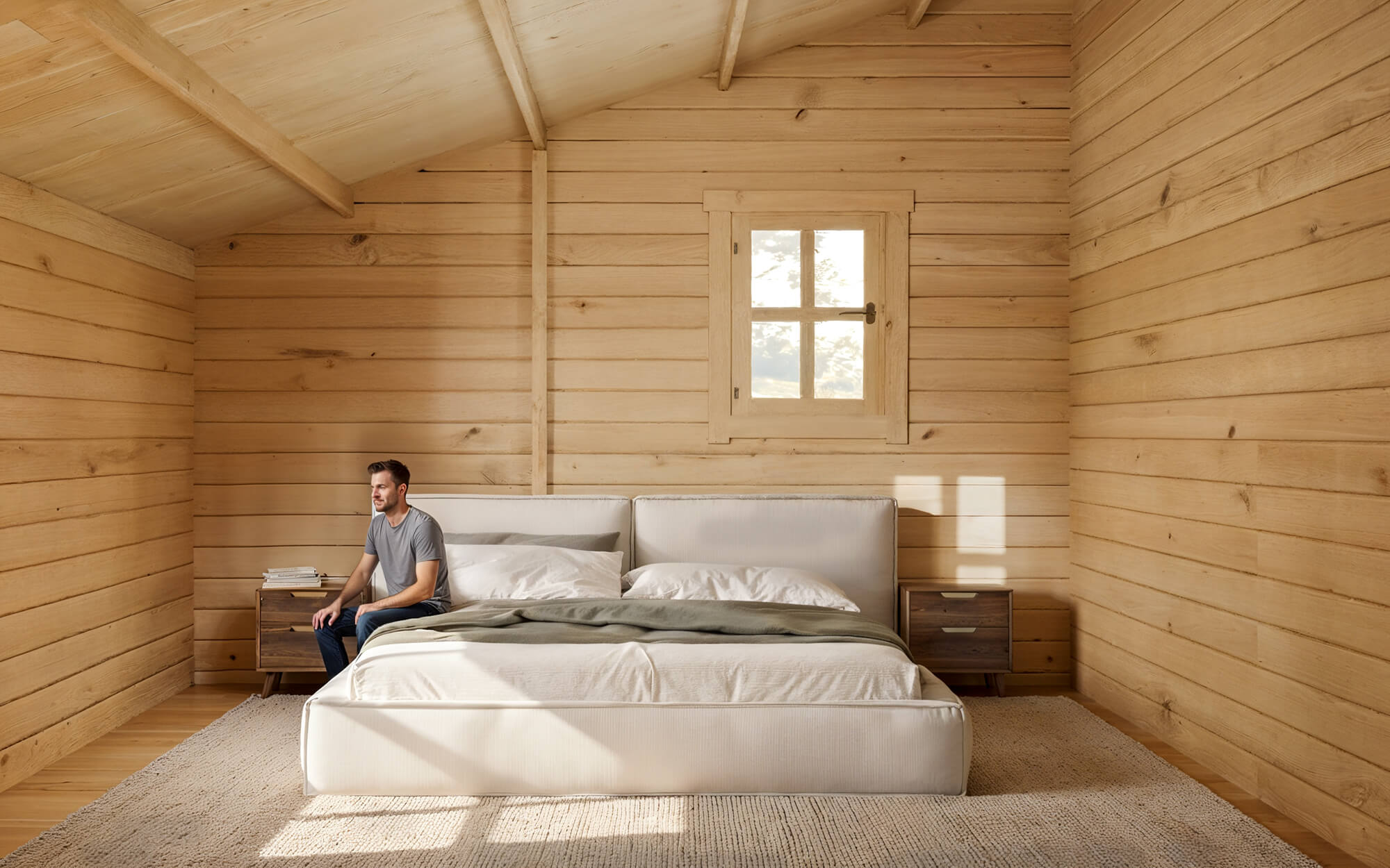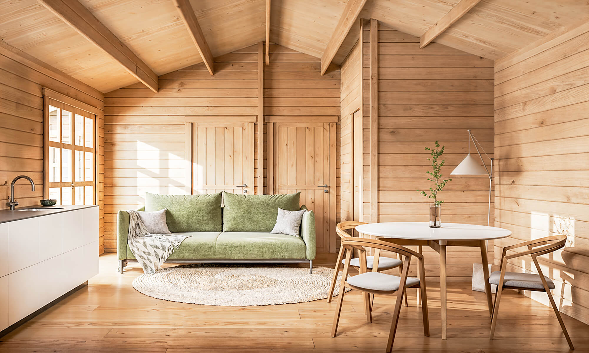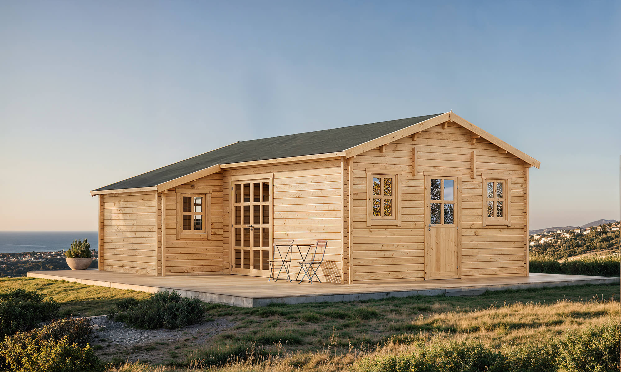 Ce magnifique chalet en bois spacieux de 40 m2 de surface habitable est idéal pour recevoir vos amis, ou passer de belles vacances avec un confort optimal. Ce chalet en kit avec quatre espaces séparés (salon, deux chambres et wc/salle de bain) a tout pour vous séduire. Les menuiseries à double vitrage fourniront un bon éclairage même pendant des journées nuageuses. Livré en kit Premium, ce chalet de jardin est équipé des menuiseries en double vitrage, du plancher bois et des fournitures de haute qualité. Contactez-nous pour un devis ou une information! Pour plus de modèles veuillez consulter la section Chalets en bois.