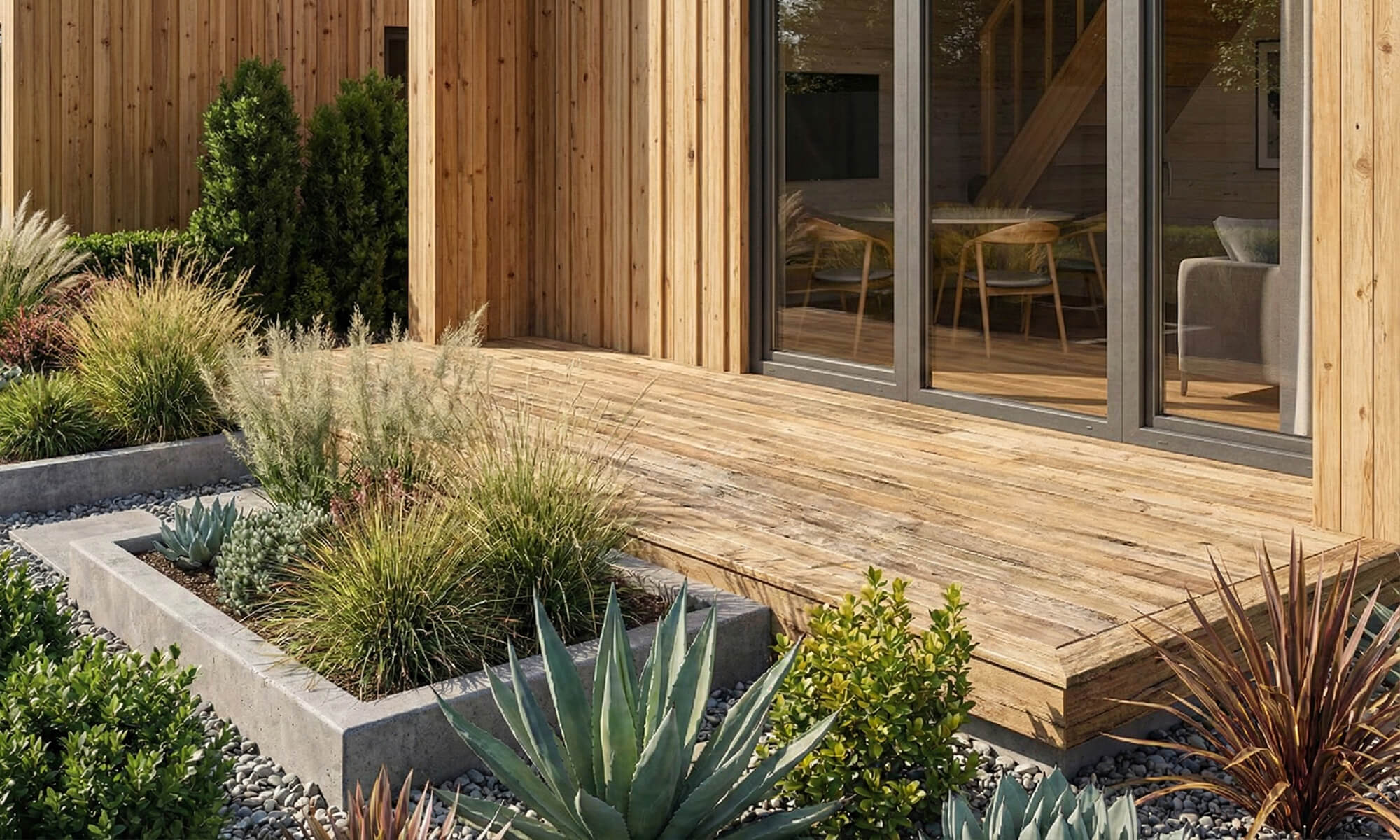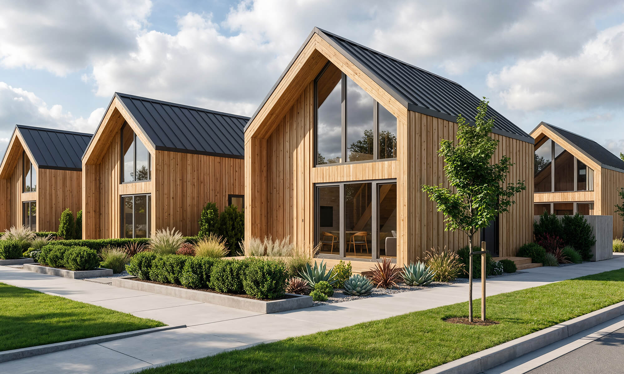 Une maison ossature bois 58 m², pensée pour vivre (ou louer) confortablement toute l’année : au RDC, séjour + cuisine + salle de bain, et à l’étage une grande mezzanine ~28 m² avec 2 espaces nuit. Toit 40°, format 5,7 × 7 m.
