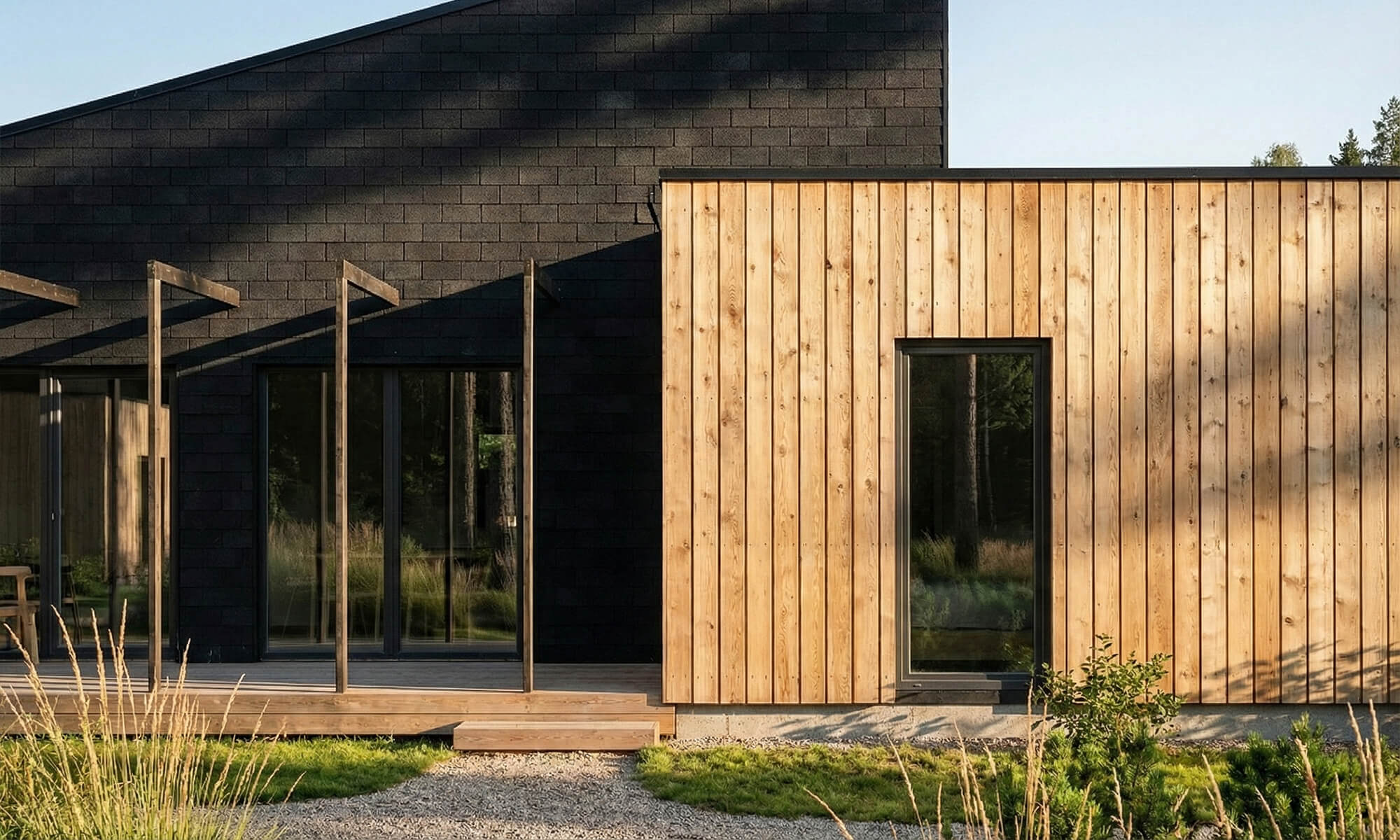 Façade + toiture en bardeaux bitumés + façade peinte 3 couches + livraison.