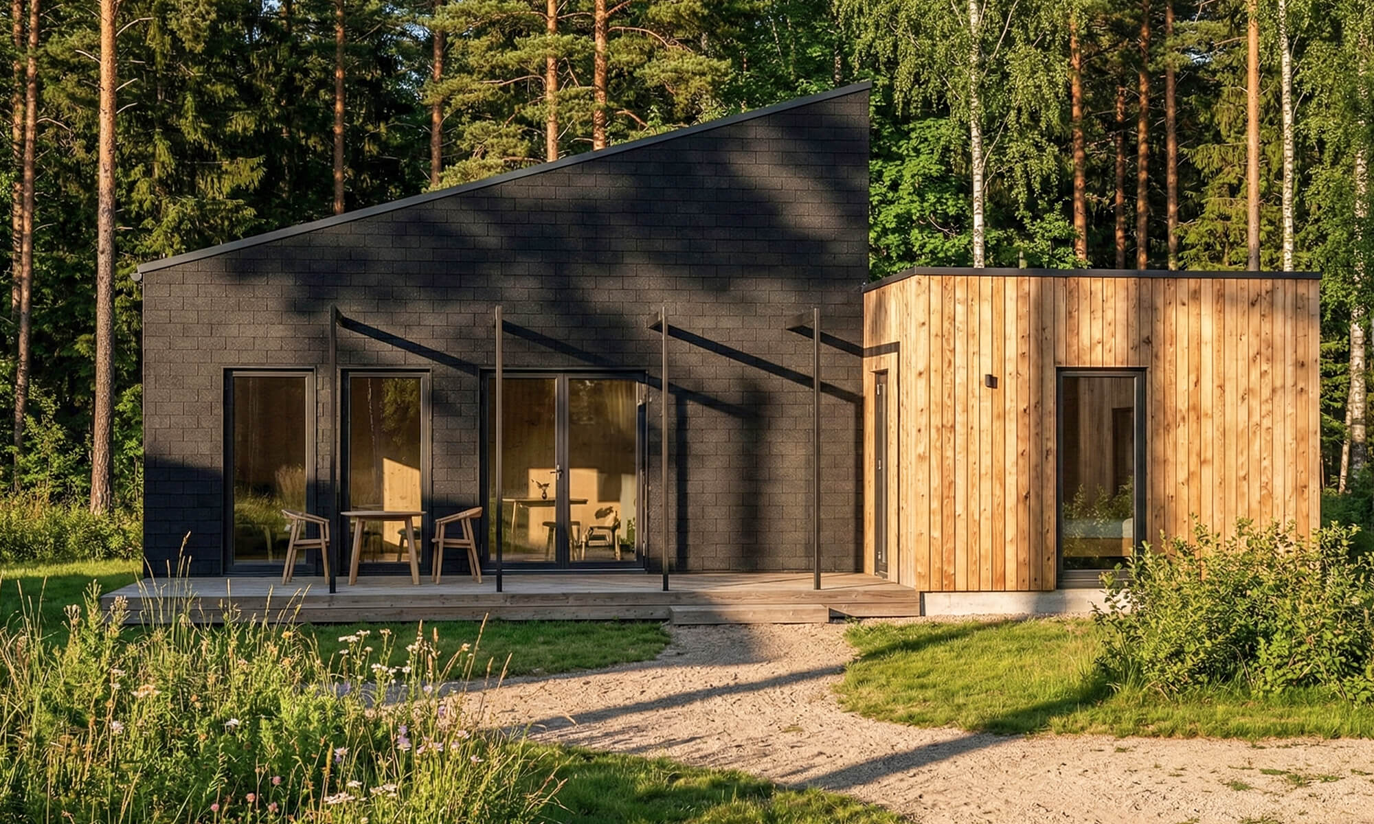 Un format “vraie maison” facile à louer toute l’année : 59 m², 3 pièces, 1 WC, terrasse 27 m², dimensions 11,9 × 8,2 m, pente de toit 15°.