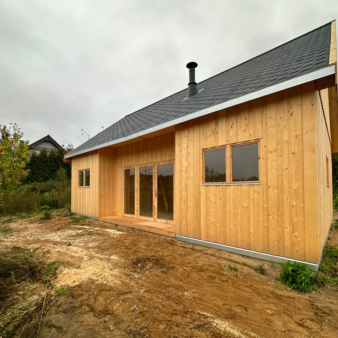 La modification principale de ce projet consiste en une isolation complète des murs, du plancher et du toit. Grâce à cette amélioration, le bâtiment est devenu un chalet ossature bois habitable toute l’année, et non plus un simple chalet de vacances. L’isolation assure un confort optimal, même pendant les saisons froides. Le client souhaitait un chalet fonctionnel et économe en énergie, tout en conservant le charme naturel du bois.